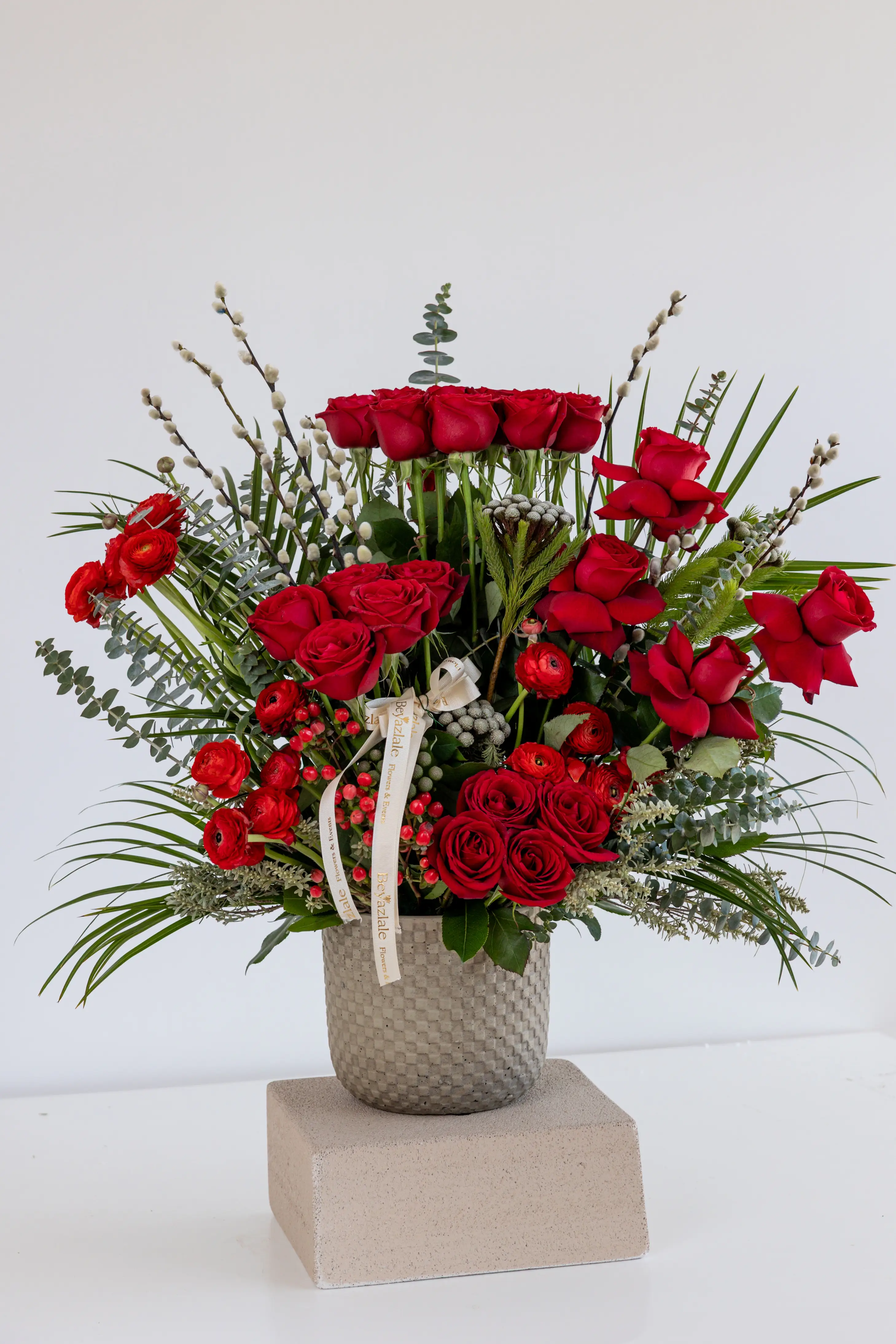 Aranjmanda farklı renklerde anastasia, lale ve gül kullanılmıştır. Aranjmanda yeşil yapraklar ve tamamlayıcı çiçek detayları yer almaktadır; turuncu, pembe, kahve ve somon tonlar özenle kombinlenmiştir. Mevsime göre aranjmanda kullanılan çiçek yoğunluğu, detaylar ve alt obje değişiklik gösterebilir.